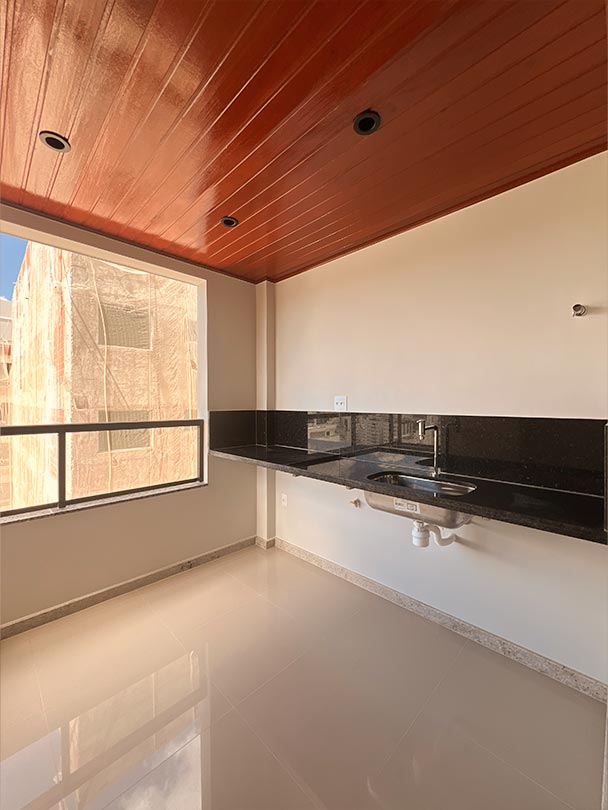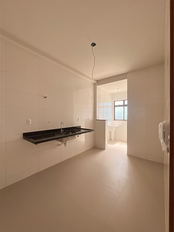 02 quartos, sala com varanda gourmet, banho, cozinha, serviço e vaga numerada.