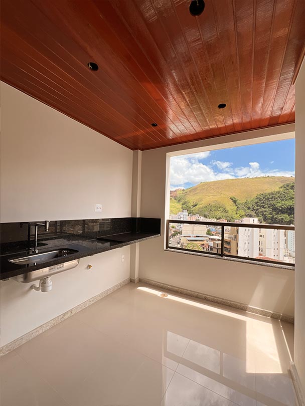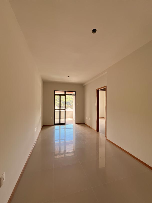 02 quartos sendo 01 suíte, sala com varanda gourmet, banho, cozinha, serviço e uma ou duas vagas na garagem.
