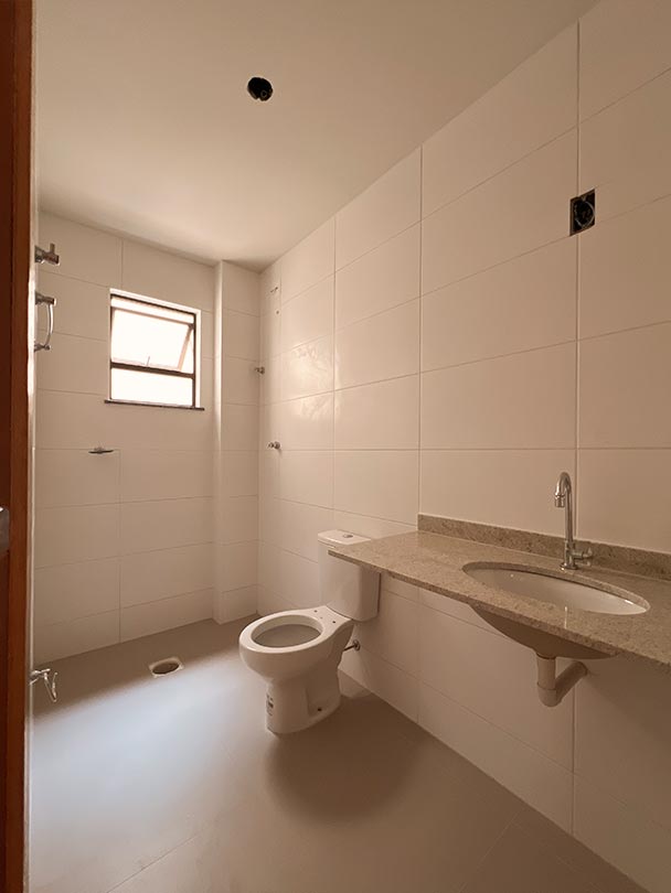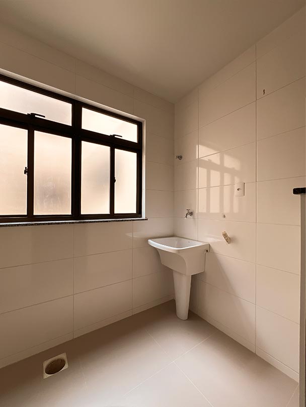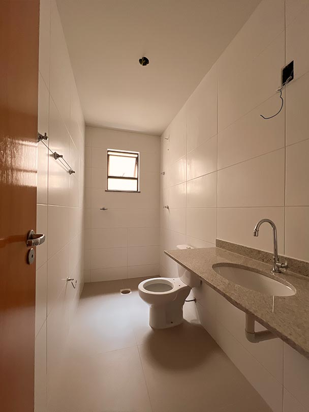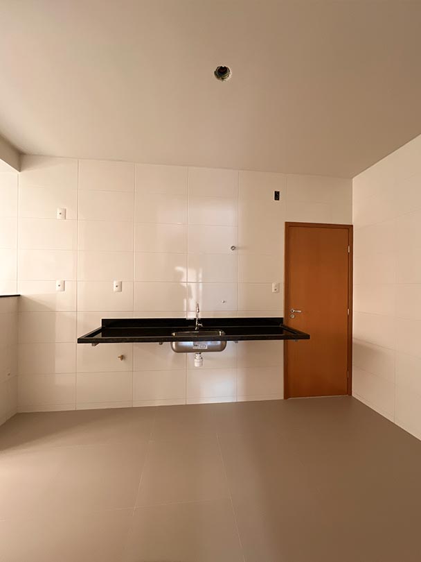 Cozinhas e banheiros azulejados em todas as paredes até o teto