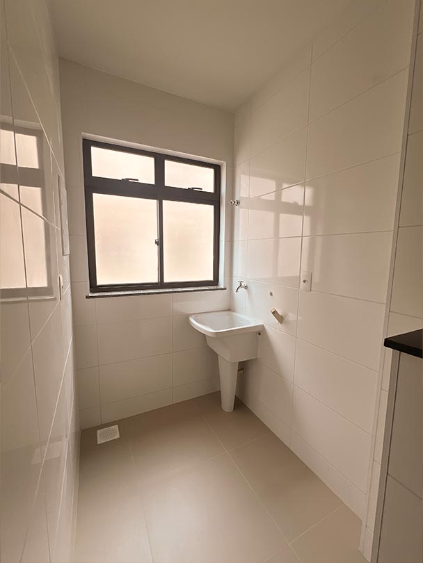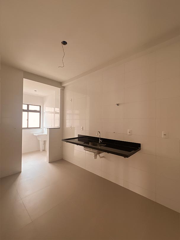 02 quartos, sala com varanda, banho, cozinha, serviço e vaga numerada.