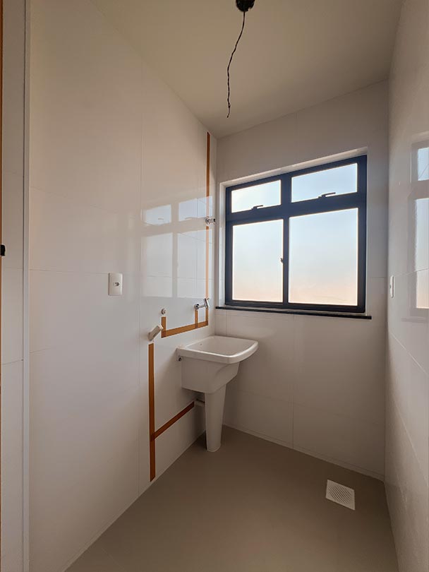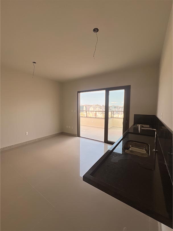 03 quartos sendo 1 suíte, sala, cozinha, serviço, espaço gourmet, terraço de 25m², duas vagas numeradas, uma simples e outra que no local cabem dois.