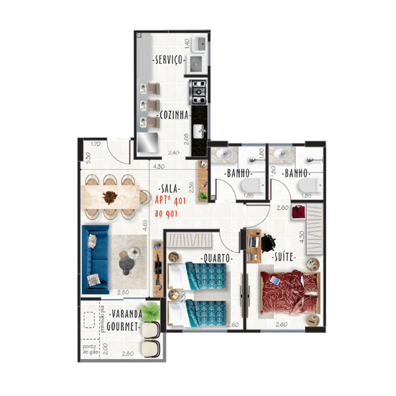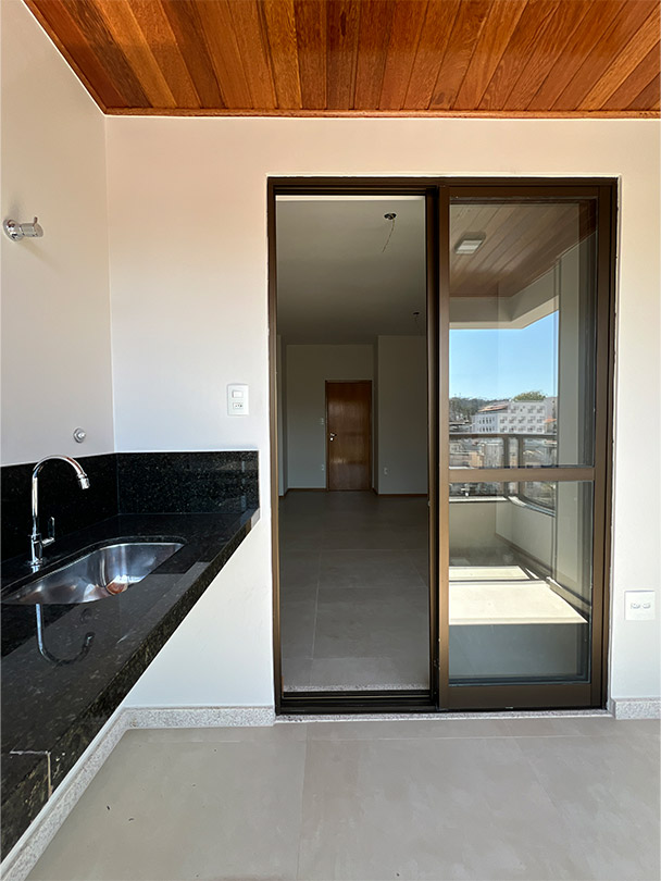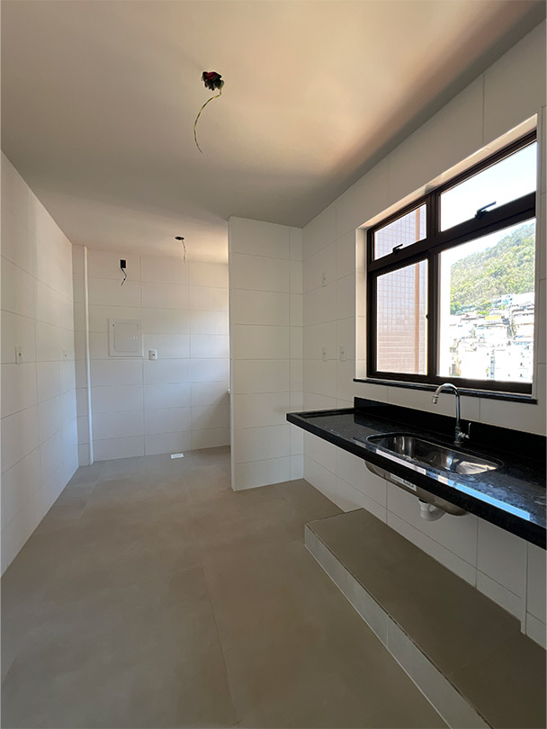 02 quartos sendo 1 suíte, sala com varanda gourmet, banho, cozinha, serviço e uma vaga numerada.